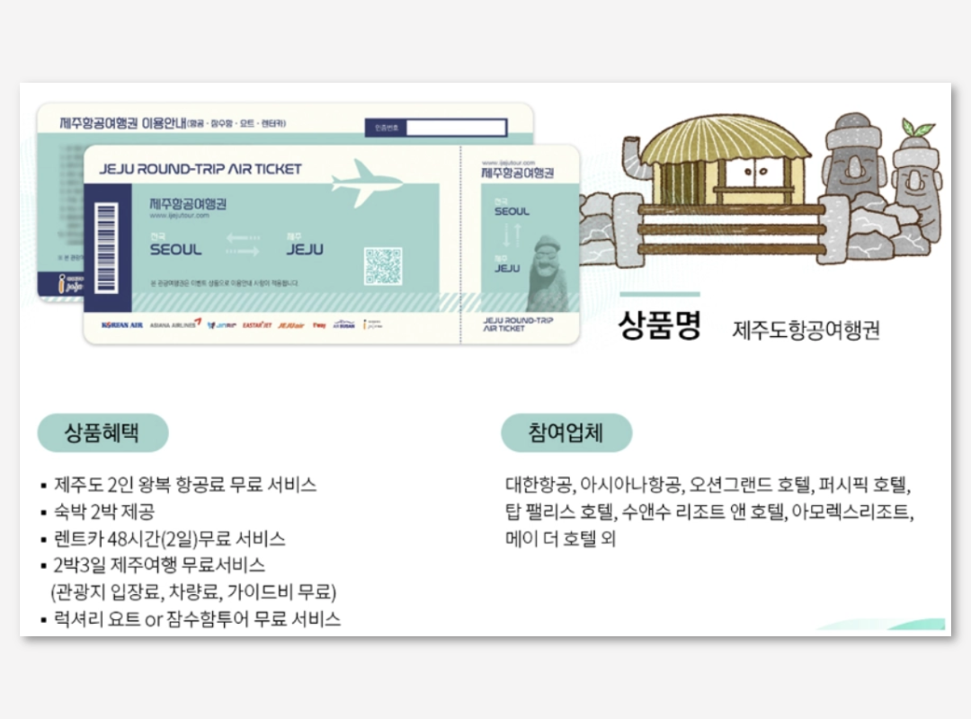제주도 2인 왕복 항공료 무료 / 숙박 2박 제공