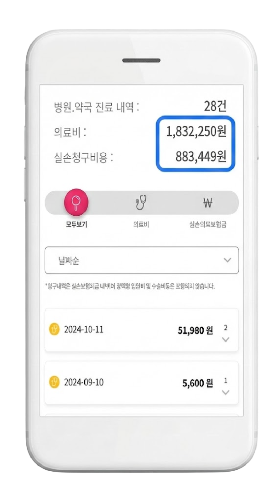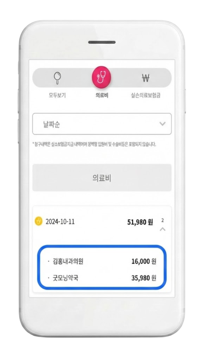 간단한 인증 만 으로 지출한 의료비와