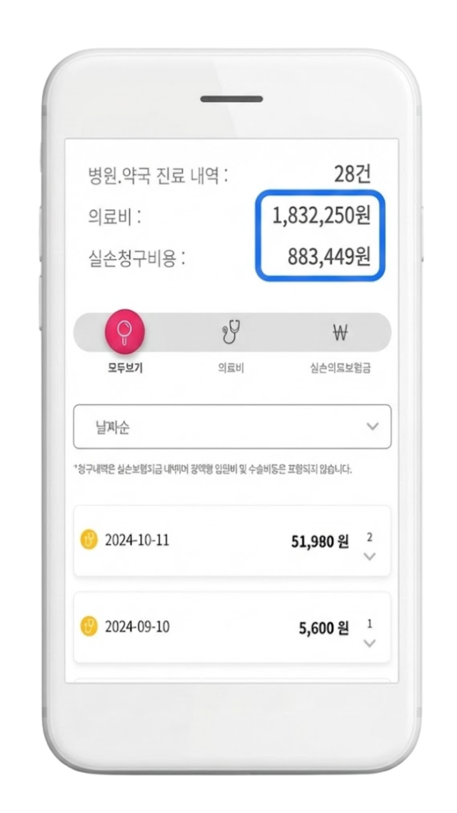 실손의료비 청구 내역을