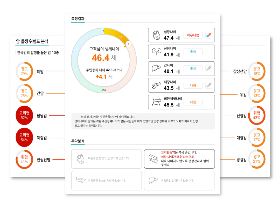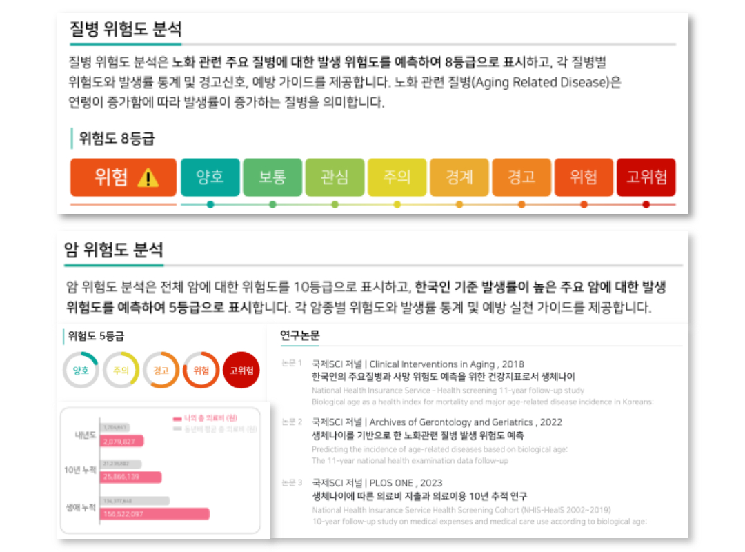 발병률이 높은 암 10종 위험도 분석, 건강 나이, 노화 속도